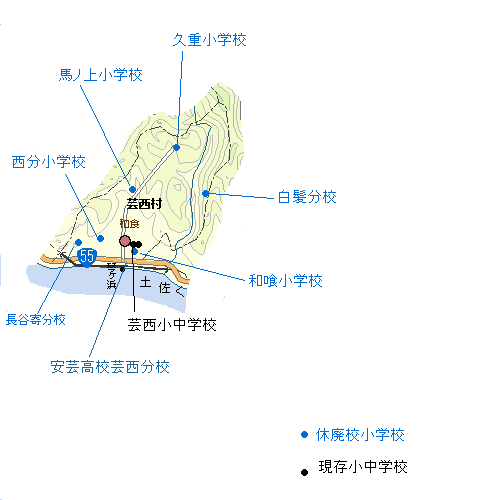 芸西村 【廃校小学校】和食 西分 馬ノ上 久重 白髪(分) 長谷寄(分)